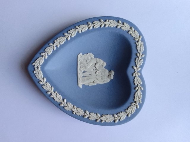 Talerzyk w kształcie serca z porcelany biskuitowej Wedgwood.