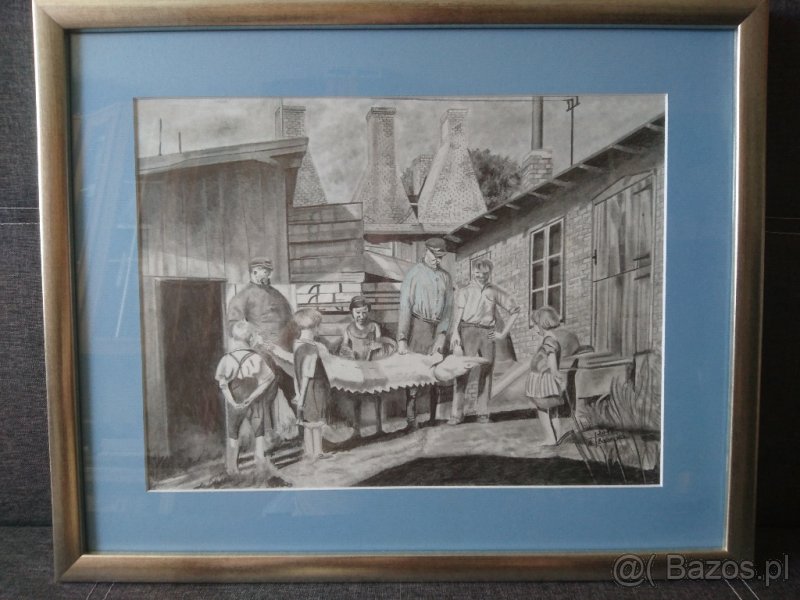 Obraz, grafika mojego autorstwa malowany techniką własną, głównie ołówek i pastele suche, w formacie A4, oprawiony, przedstawiający scenę z przedwojennego Gdańska, o intrygującym tytule niebieska kamizelka, która nieznacznie wyróżnia się na rym biało czarnym obrazę. Zapraszam do zakupu tego obrazu, tak jak innych moich prac.