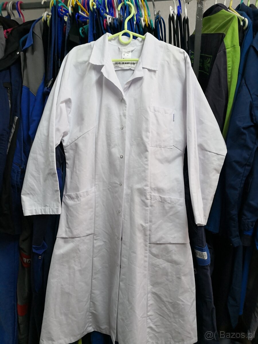 Białe fartuchy ,długi rękaw ,różne rozmiary ,damskie i męskie .Tania odzież robocza i ochronna używana ,stan bardzo dobry .Wrocław ,ul Sępa Szarzyńskiego 82 .Telefon 601 696740 .