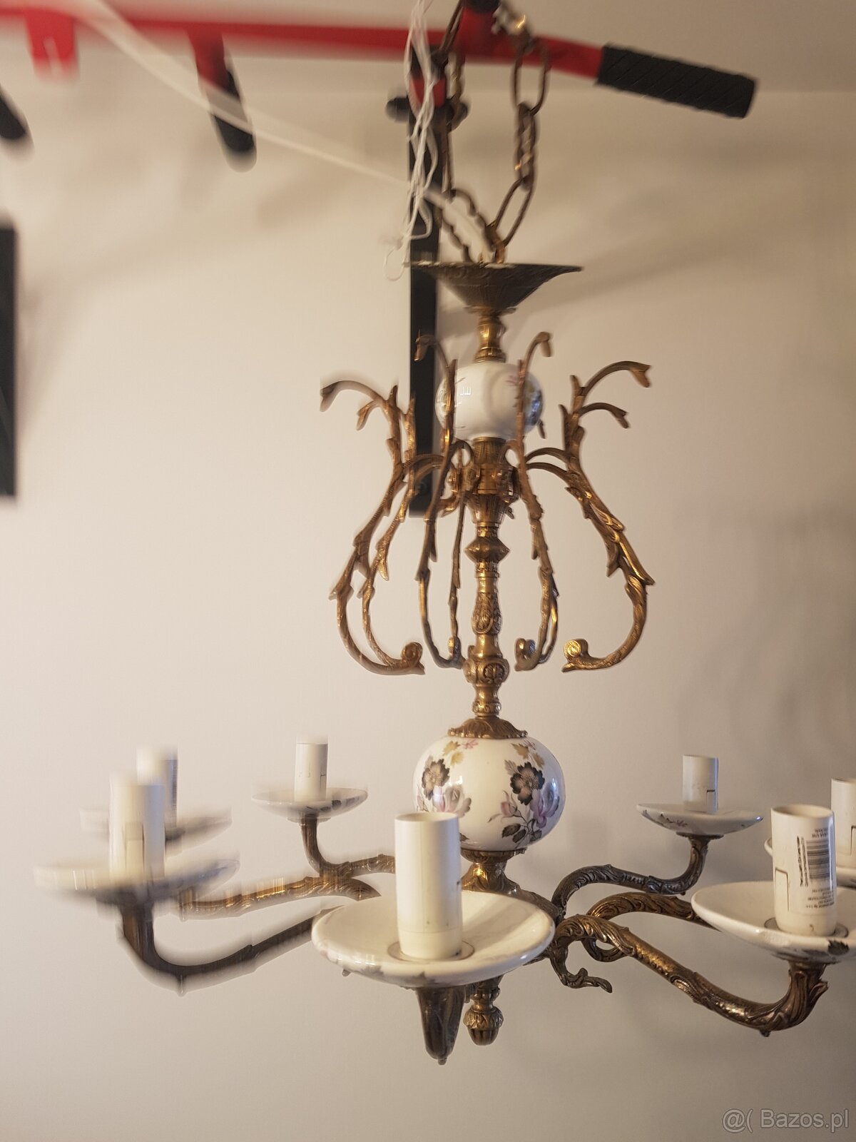Żyrandol osmio ramienny z dodatkim porcelany